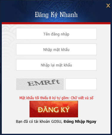 Bước 4: Đăng ký mật khẩu game tại http://id.gosu.vn/