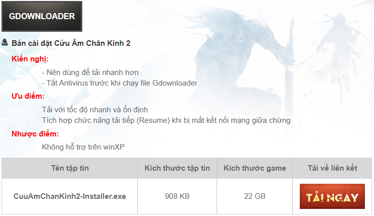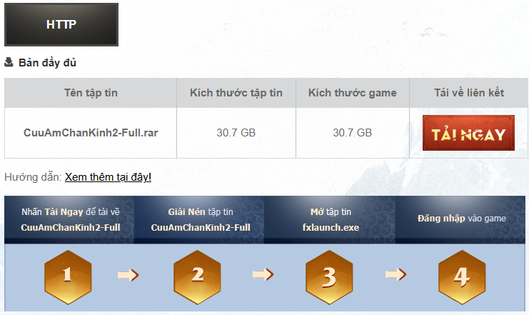 Tại trang chủ Cửu Âm Chân Kinh, nhấn nút Tải game.